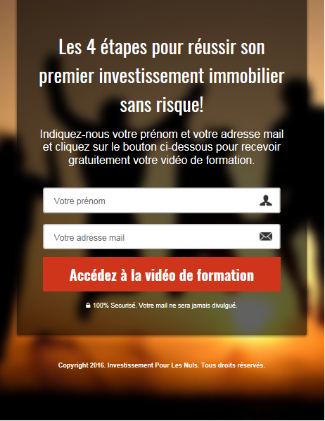 Cette page peut contenir un formulaire d’inscription différent du formulaire d’inscription décrit plus haut. La page de capture peut être complétée par une liste des bénéfices qui pourront être apportés aux visiteurs qui s’y inscrivent. Vous pourrez par exemple détailler précisément le contenu que recevra le nouvel abonné en échange de son mail: