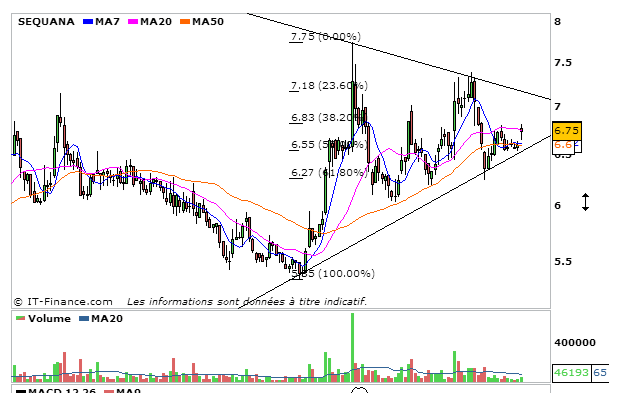 Attention, Sequana a recassé à la baisse la ROB du triangle symétrique, ce qui n’est pas bon signe pour rallier l’objectif des 8,40 €.