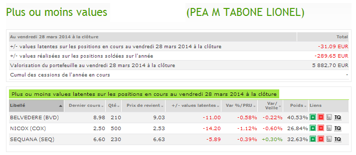 Portefeuille au 28 Mars 2014