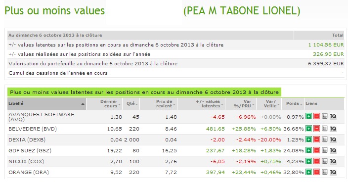 Portefeuille au 07 Octobre 2013