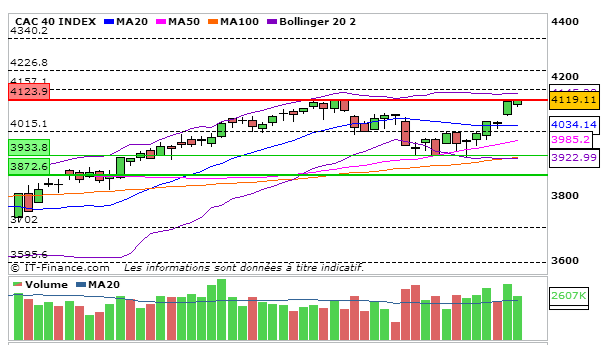 Le CAC n’aura pas consolidé et se sera contenté d’une micro hausse de +0,06% par rapport à la séance d’hier à 4119,11.