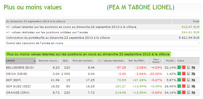 Portefeuille au 23 Septembre 2013