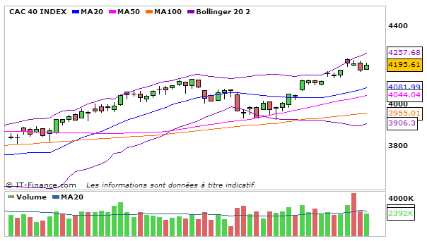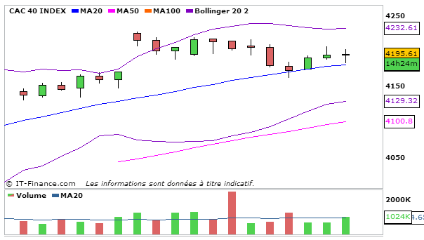 Retour du CAC proche des 4200 points avec cette hausse de 0,56% par rapport à la séance d’hier pour terminer à 4195,61 points.