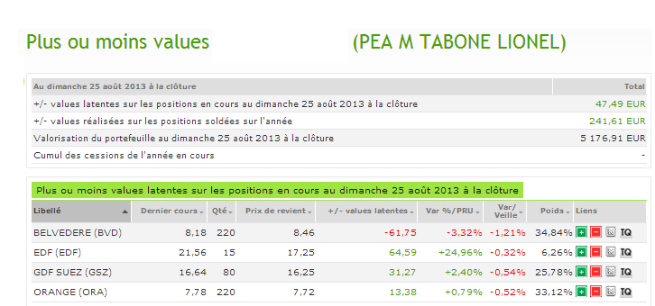 Même analyse qu’EDF pour le titre GDF si ce n’est que la bande inférieure de bollinger n’est pas encore atteinte.